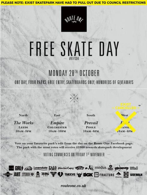 The fourth Route One ‘Free Skate Day’ officially kicked off around the UK at 10am this morning, with three parks currently offering free entry for...