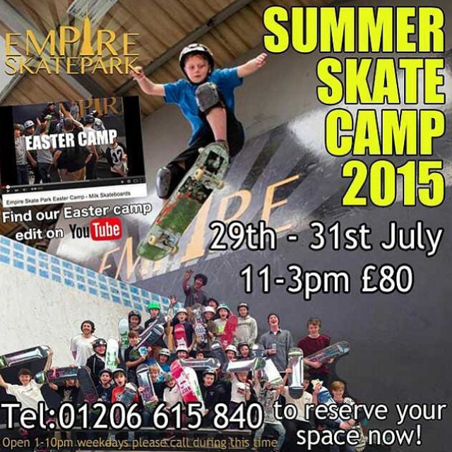 Empire Skatepark in Colchester are running a summer skate camp this year from 29th-31st July, with details to be found on the flyer below. Get...