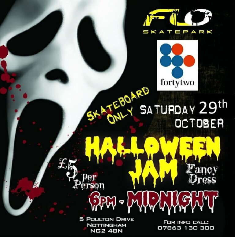 The Flo Skatepark Halloween Jam will take place this Saturday (29th October) from 6pm until late, sponsored by Nottingham's Forty Two Shop and featuring a...
