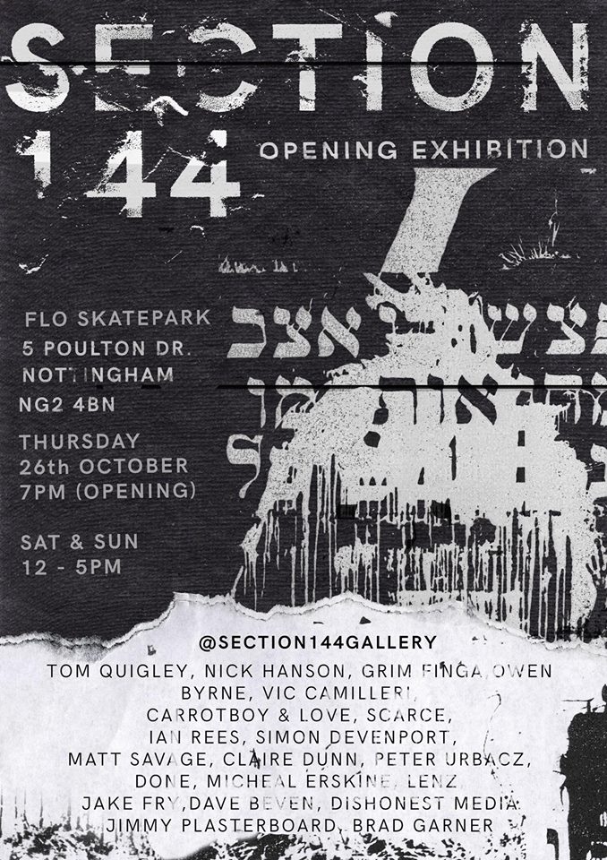 Flo Skatepark will host the Section 144 Gallery opening later this month, celebrating the art of the Nottingham skate community on Thursday the 26th of...