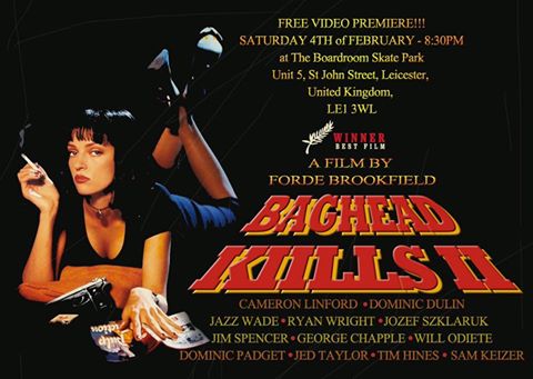 Forde Brookfield's 'Baghead Kiills II' will be premiering at The Boardroom Skatepark in Leicester on the 4th of February, 8.30pm.