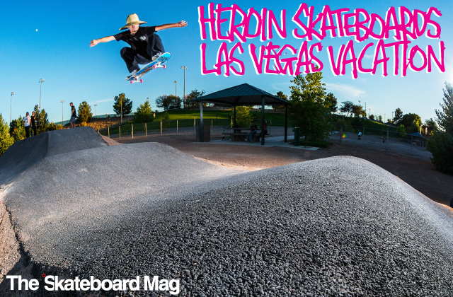 A selection of Heroin skateboards team members got their shred on in Las Vegas, askating skateparks and a ridiculous looking bike track near the desert. Check...