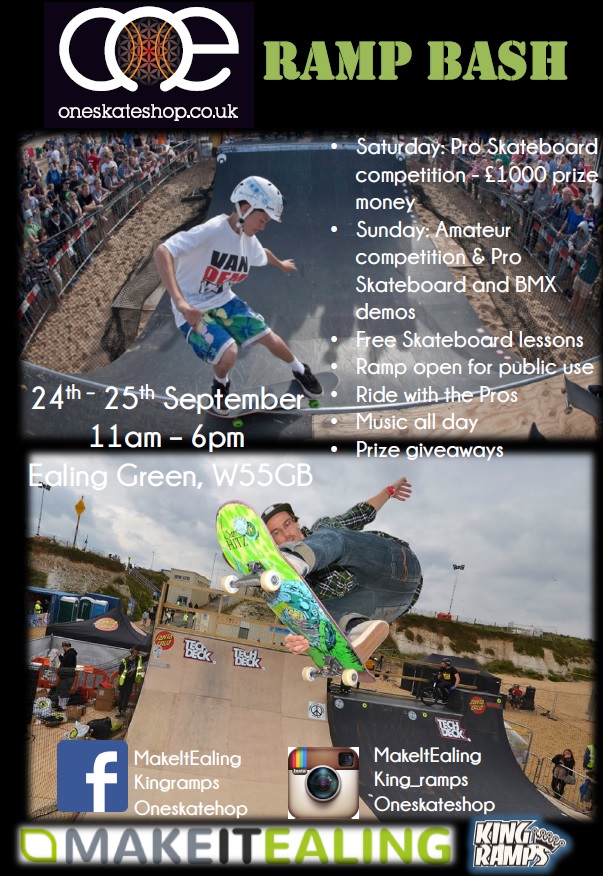 One Skateshop will be hosting the Ealing Ramp Bash over the weekend of the 24th and 25th of September in Ealing Green, with the Saturday...