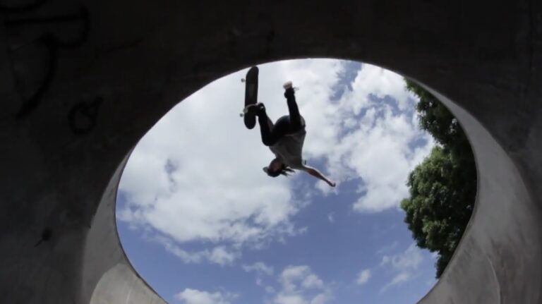 Ambidextrous backyard pool ripping, rubble strewn post-apocalyptic street spots and technical tricks on some properly savage transitions