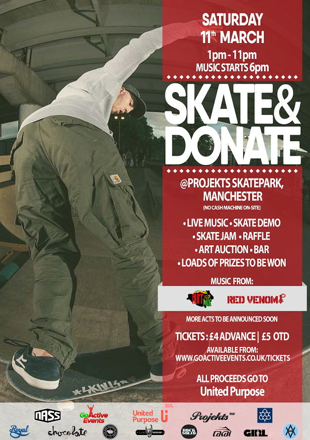 Projekts MCR will be hosting the 'Skate & Donate' charity skate event on the 11th of March, consisting of jams during the day, a demo...