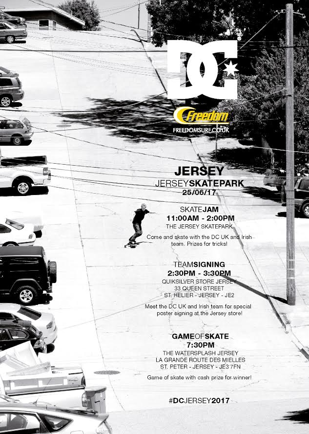 The DC UK team will be heading over to Jersey this weekend, with a skatepark jam, shop signing and game of S.K.A.T.E. pencilled in for...