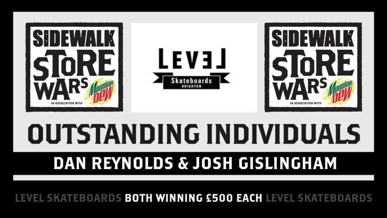 Alongside the Most Outstanding Individuals prize, (awarded to Josh Gislingham and Dan Reynolds of The Level Skateshop yesterday), we also have a £1000 prize for...