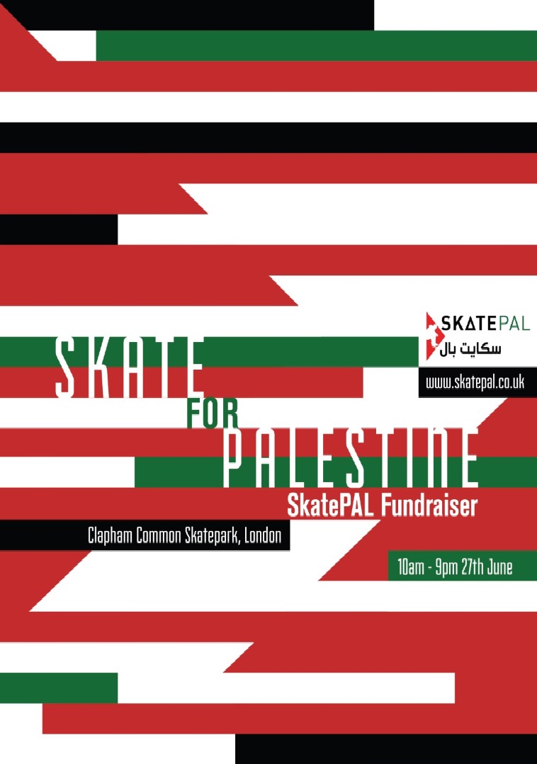 Skate for Palestine will be happening at Clapham Common skatepark on Saturday 27th June from 10am to 9pm. Skate alongside pro skaters and teams from...