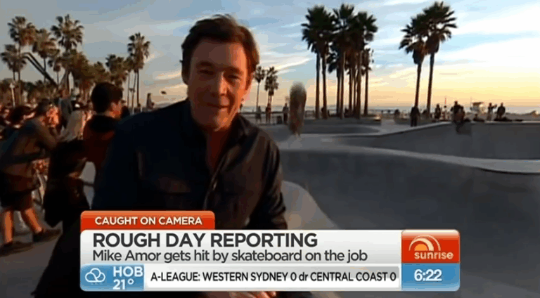 News Reporter hit by Skateboard live