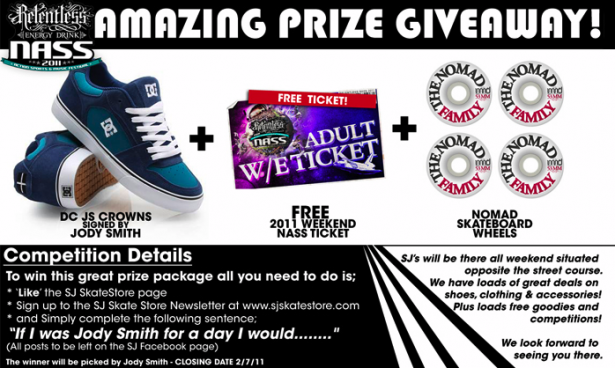 Fancy winning yourself a full weekend ticket to next weeks Relentless NASS Festival, a pair of “JS Crown” shoes from DC signed by Jody Smith...