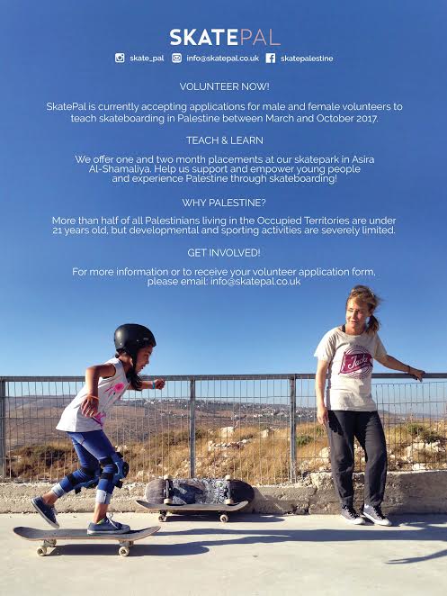SkatePAL volunteer applications for 2017 are currently being accepted, with details of how to get involved and help teach skateboarding in Palestine between March and...