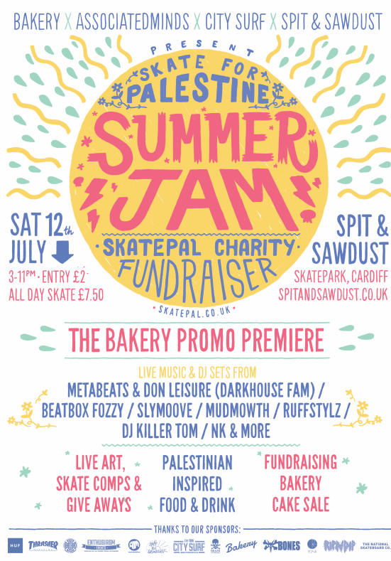Thanks to the bakery, City Surf and Spit & Sawdust the skate for Palestine Summer jam 2014 fundraiser was a success! The footage from the event...