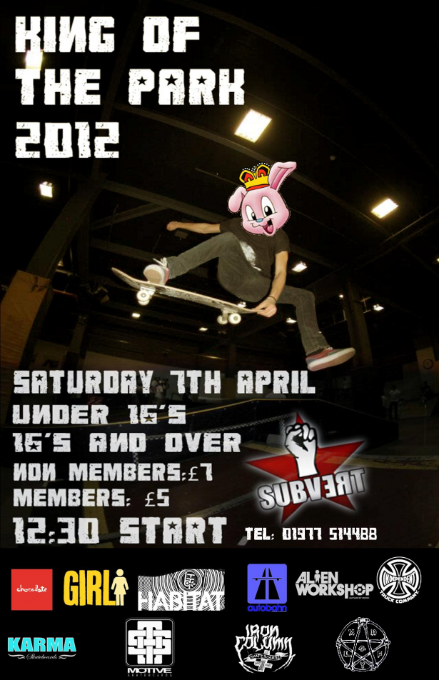 Castleford locals, here’s your chance to come up! Subvert’s “King of the Park” comp 2012 will be going down on April 7th so make sure...