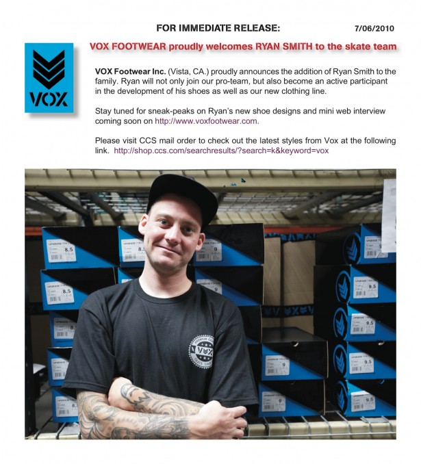 After parting way with the three stripes, Dave Bachinsky’s feet have found themselves a new home in the shape of Vox. See the press release below...
