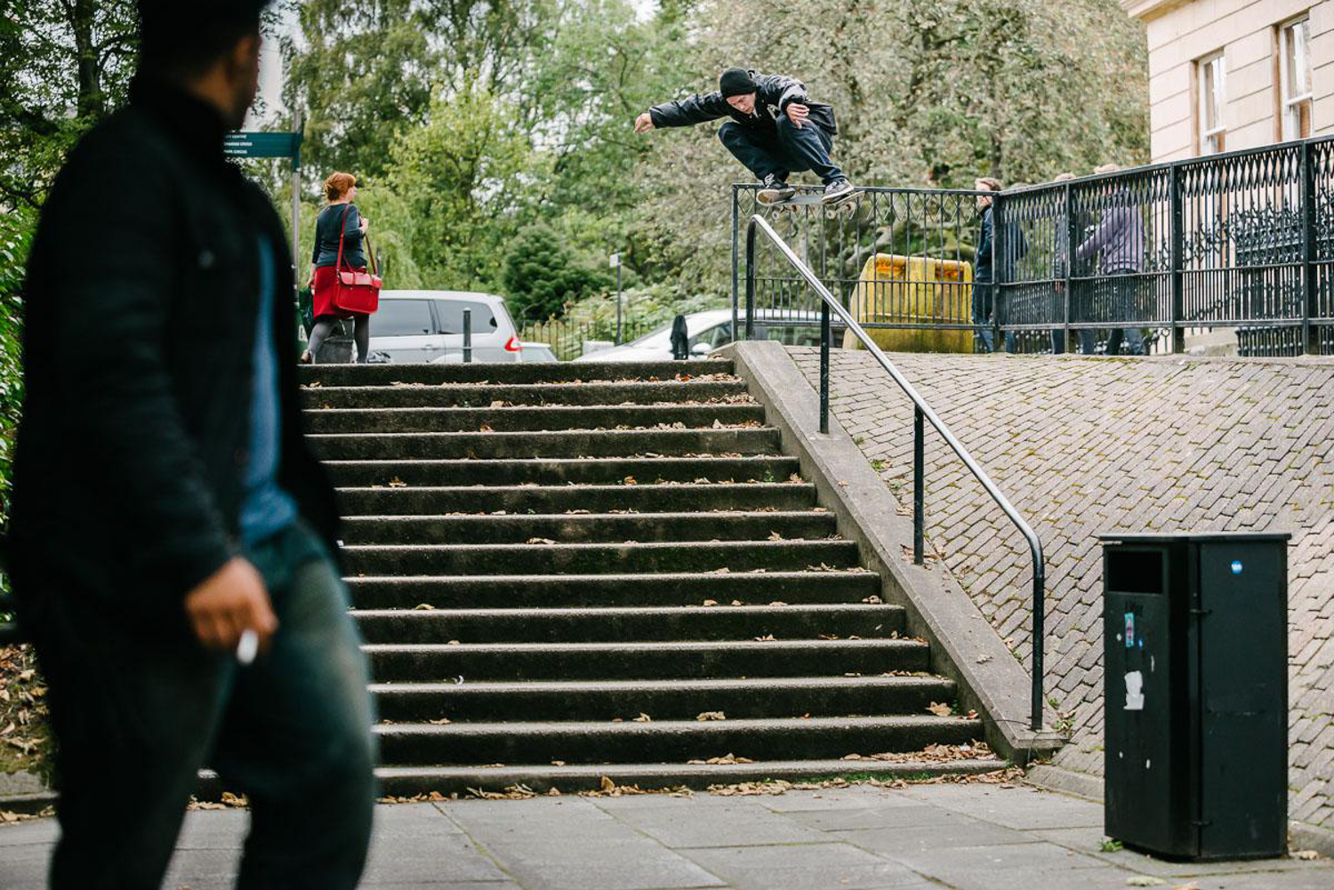 Here’s Jamie tackling some classic Glasgow architecture back in 2002, architecture recently re-visited and handled again by the NB crew. Give this a watch then watch Jamie’s amazing H’Min Bam section from 2004 posted below and then click Sam Ashley’s photo of Tyler Surrey’s switch ollie at the same spot below and then watch Russel Houghten’s excellent ‘Quids In’ too.