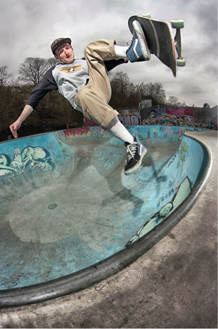 – First start? F*ck! I don’t know, I can’t remember a single thing since I started skating I’m beating my banger just trying to guess. Right, I have just dug out my first magazine I bought: it’s a 2005 issue of The Skateboard Mag with Peter Hewitt carving a full pipe. His face is all sideways from the gravity pulling the chimp like denim fellow back round on the cover and has skate and destroy pasted all over it. So I’m guessing around then, 8 or so years ago. The first time I picked up a skateboard was from a boot fair in my local town. It cost about 2 quid and came equipped with fluorescent rails and the graphic was all messed up. It must have been vegetating in some grandma’s garden since 1986! Real goofy looking, it didn’t work right well but I mean as your old man says ‘a good workman never blames his tools’ right? So I learnt to ride the thing, balance and stuff, using it to go to town and to the shop mostly then eventually saved up enough paper boy money and got myself the real deal, it’s been on ever since.