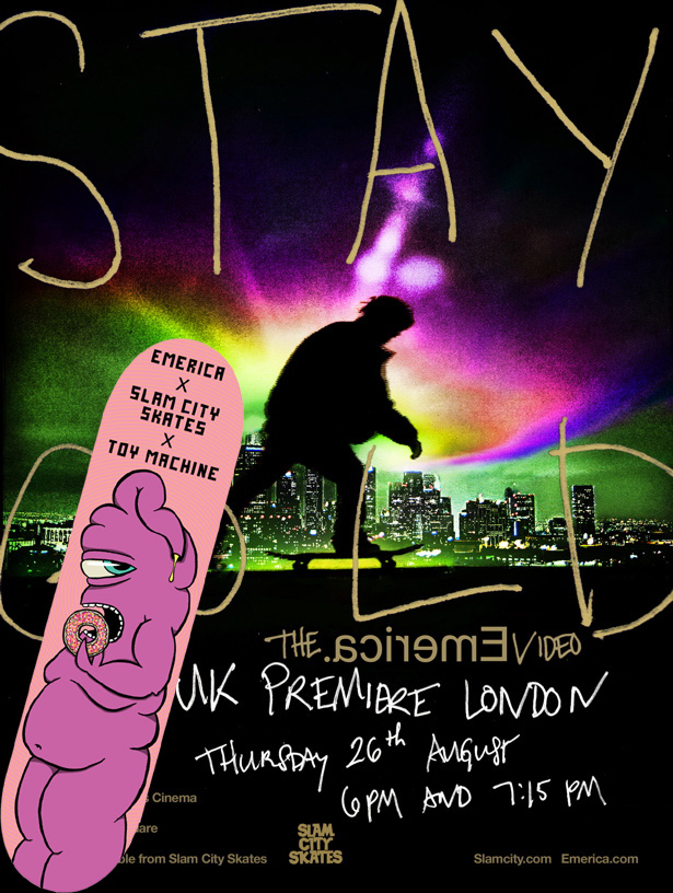 Those kind people at Emerica have hooked up with Slam City and Toy Machine to bring two of you lucky folks the chance to win yourself a pair of tickets for next weeks 6pm showing of the long awaited “Stay Gold” at its UK premiere, as well as a limited edition Emerica x Toy Machine x Slam City Ed Templeton deck.