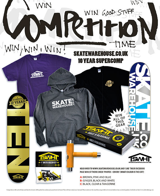 Win all of this gear! Head on over to www.skatewarehouse.co.uk, “Like” their Facebook page and whilst you’re there, have a look at their “Photos – Covers”...